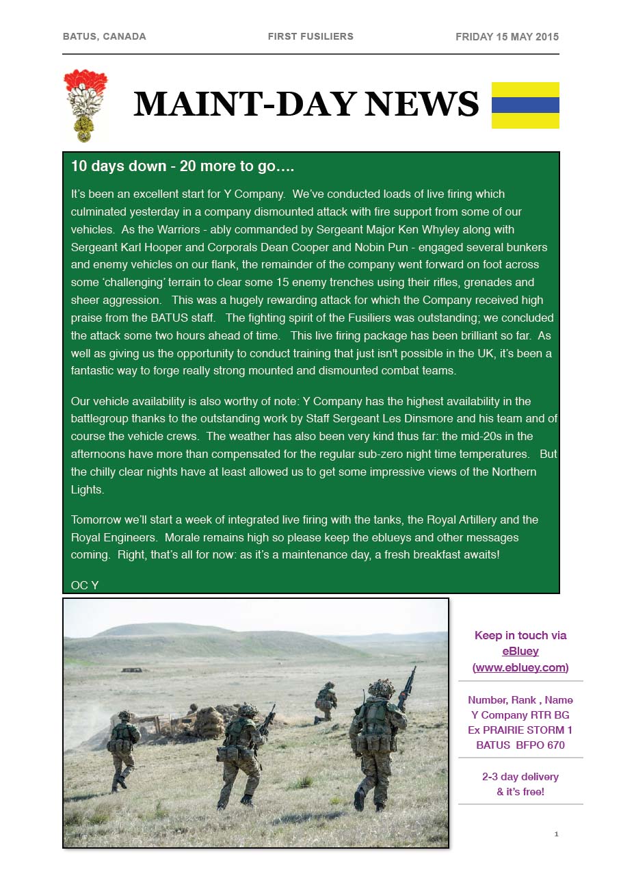 from Y Company First Fusiliers currently on Ex ASKARI STORM in Kenya.