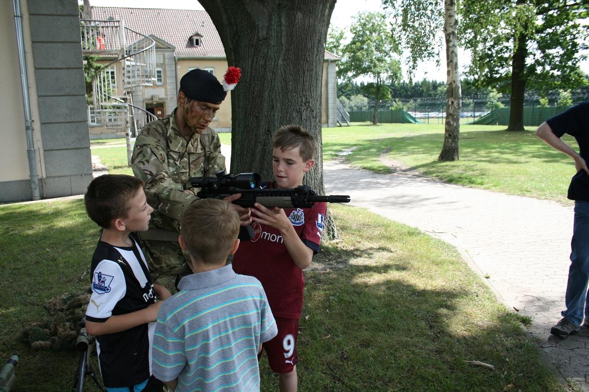Trenchard Barracks Open Day, Saturday 30th June 2012 Over 2,000 people visited Trenchard Barracks in Celle on Saturday 30 June 12, for an Open Day. The gates of the barracks were opened to the local community as a gesture of goodwill and farewell before the Battalion handed the barracks back to the Garrison upon departure to Cyprus. To celebrate the historic day, a range of vehicles used by both 7th Armoured Brigade troops and those of the Bundeswehr (German Army) were arranged in static displays for civilians to view, in addition to performances given by the 2 RRF Corps of Drums and the Band of the Parachute Regiment. The afternoon was completed by a win for the Battalion in the Anglo-German football match: although the teams were evenly matched, an early goal by the Germans was disallowed and the Fusiliers side charged to a 2-0 victory. The Open Day went really well and was just what we wanted. The local community knew it was our farewell week, and they were extremely pleased to be given the opportunity to come in and have a look around - so many of them having driven past every day for years. Frau Elke Schulte, a local Celle resident who came to the Open Day with her family, said: "It is sad that the British go. They are here a long time and we are good friends with them." British Veterans from across Germany also visited the open day festivities as part of their visit to Hohne Garrison, which hosted them as part of the annual Armed Forces Day celebrations that took place across the UK and BFG.
