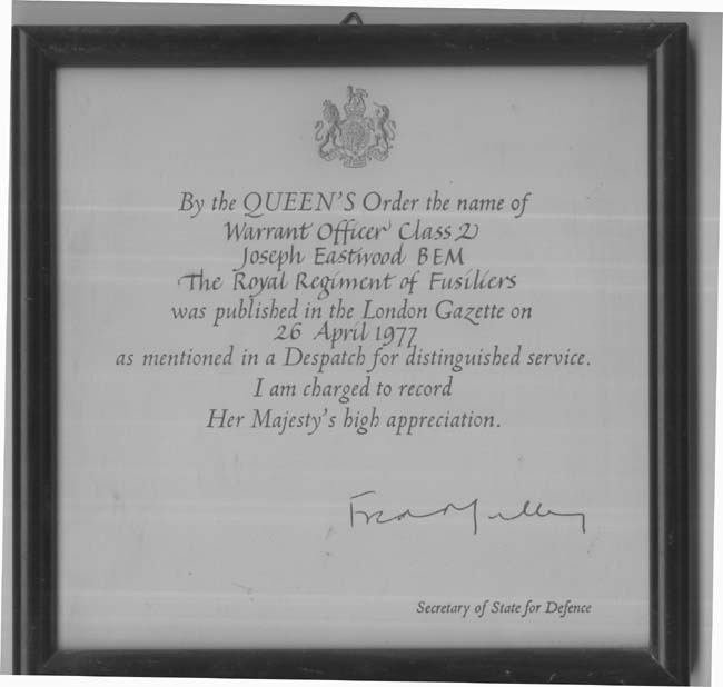 by an 82mm Recoilless Rifle round whilst running to his fighting
