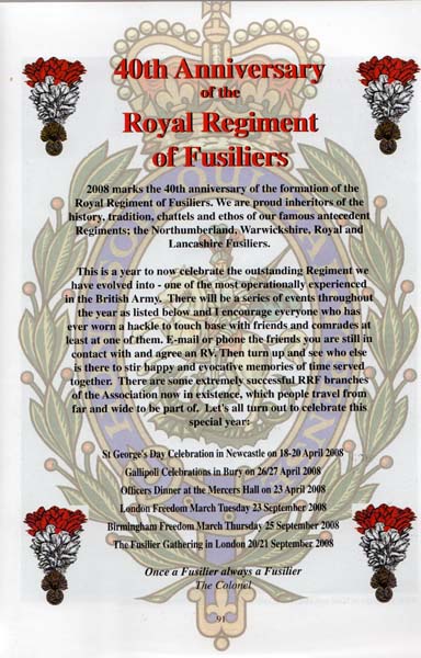 LANCASHIRE FUSILIER NEWS NOTES FOR SUMMER