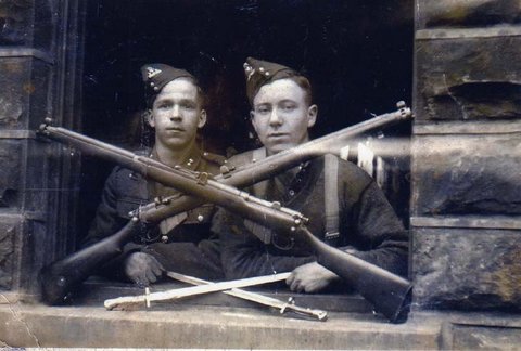 Mr Peter Maher MM (ex 2LF) at the Fusilier Museum 2012 and at Wellington Barracks (on right) in 1939