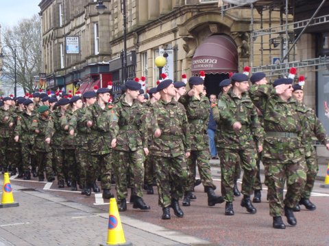 He has just completed basic training and currently on a driving cardre on route to the 1st Bn, As part of the Veterans parkage for the future Oldham Branch will monitor his progress for press release's involving veterans week as a local Royton Oldham Fusilier.Yes of course he actully got a pair of Assoc Regt socks from the Oldham PRI