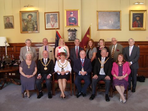 Museum Lunch. The Board of the Fusilier Museum invited the recently nominated Mayors of Bury, Salford and Rochdale to lunch to bring them up to date on the Fusilier Museum and encourage support for future projects. The Mayor of Bury, Councillor Joan Grimshaw was accompanied by her consort Mr Paul Grimshaw. The Mayor of Rochdale Councillor James Gartside was accompanied by Councillor Jane Gartside and Councillor James Lea, the Ceremonial Mayor of Salford, (we also now have an elected mayor in Salford) was accompanied by Ms Ann Cox, formerly of the Royal Signals.