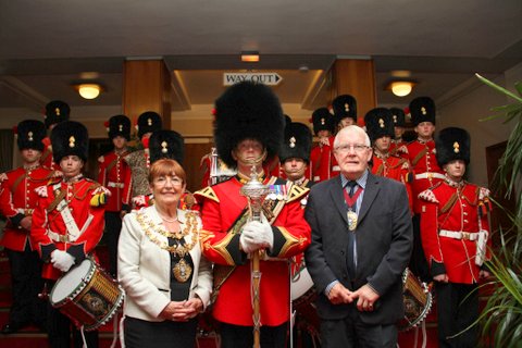 Mayor Making. Regiment is part of the fabric of Bury and always receives an invitation to the Mayor Making Ceremony held annually in Bury Town Hall. It was a pleasure to see Councillor Joan Grimshaw installed as Mayor and her husband Paul as Consort. It was a privilege to attend such an occasion and the Regiment was much in evidence throughout. The event also provided an opportunity for the Regimental Fanfare Trumpets to be on parade in the Council Chamber, where they brought much gravitas to the occasion.
