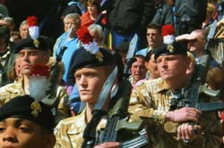 Army Careers Exhibition. October commenced with the Army Careers Exhibition at Altcar near Southport. This important recruiting event brought together some 12,000 young people from schools, colleges and the Army Cadet Force from all over the North West. This flag ship event was run by Major David Cook and heavily supported by the Regiment including considerable manpower and equipment from 1RRF and the Regimental Recruiting Team. This concentration of regimental assets gave a very positive impression of the Fusiliers and reinforced its position as one of the North West's leading infantry regiments. The one minor cause for amusement was the large banner on the RRF recruiting stand which proclaimed the Fusiliers as Northumberland's Regiment. This may well be true, but it certainly caused much confusion amongst the youth of Lancashire. In addition to the "green team," the staff of Fusilier Museum made the best of the opportunity to promote Army Heritage and the Fusilier Museum by briefing the assembled teachers on the educational potential of regimental collections.