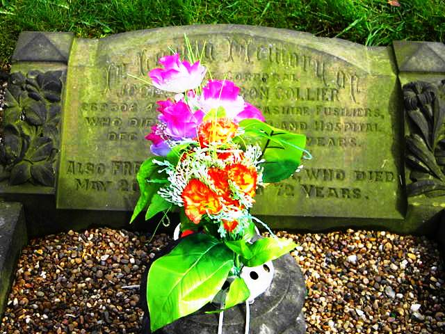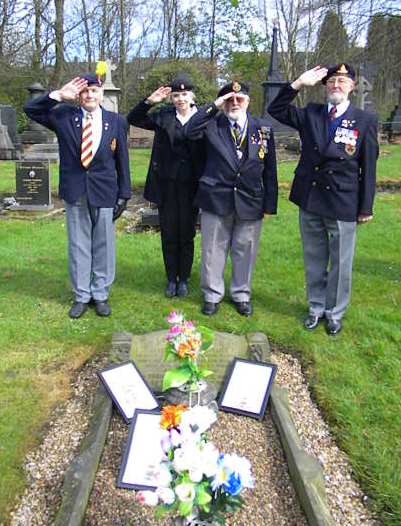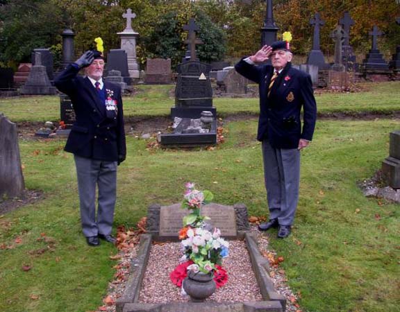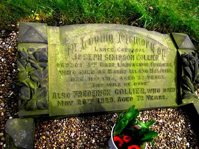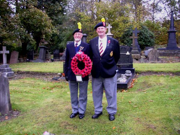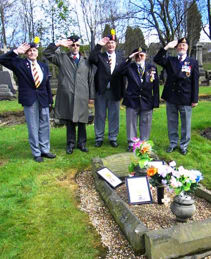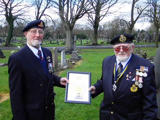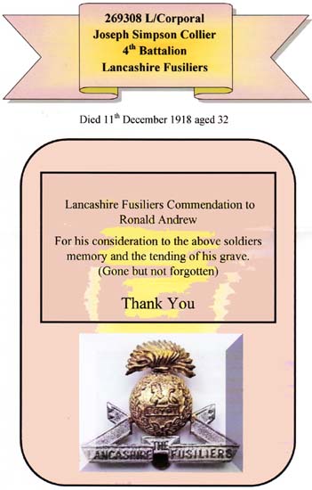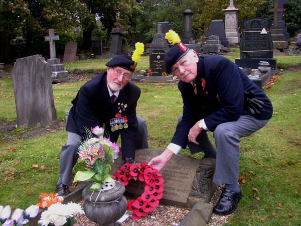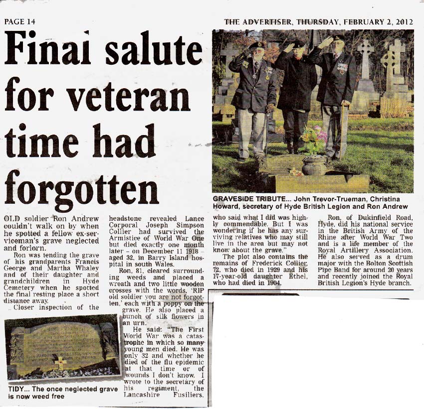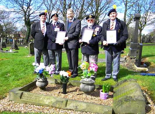 Wednesday 7th November We at Droylsden laid a wreath in Hyde cemetary on the grave of the first world war veterans grave The grave has had a transformation in appearance though not fully back to the pristine condition of its first construction Ron Andrew & Eric Bond seen here administering our dedication to this fallen Veteran Joseph Collier Simpson |